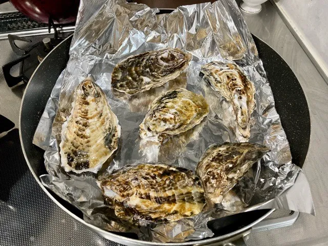 殻付き牡蠣の調理は、まるで宝箱を開けるようなワクワク感があります。