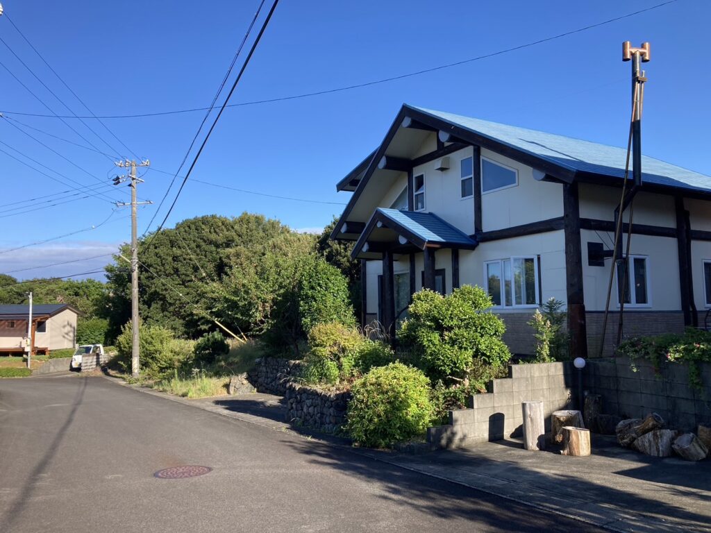 施設は28年前に前オーナーさんが定年後に移住しようとコツコツとDIYで作ってきたログハウスです。鳥羽市石鏡町という小さな漁師町にある静かな別荘地の中にあります。