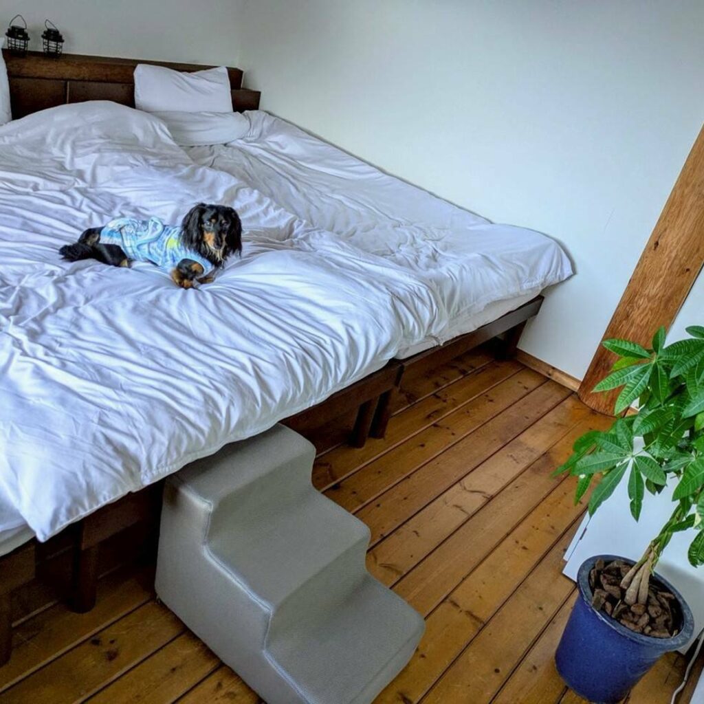 メインベッドルームはセミダブルベッドが2台、シングル1台がありワンちゃんと一緒にお休みいただけます。工夫次第で1世帯様がお使いいただけます。
