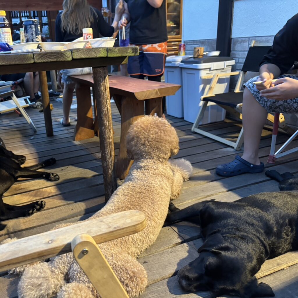 囲炉裏は新しく新調し、ワンちゃんと一緒に雨でも冬場でもゆっくりと食事を楽しめるようにテーブル方式として設置しました。